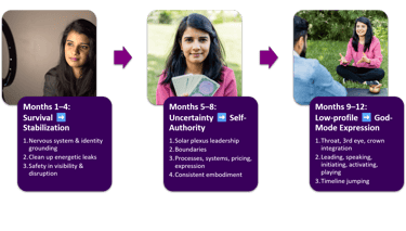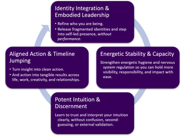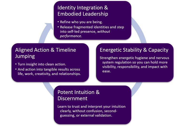 Integration often takes time. This container is designed for steady refinement, not quick fixes or emotional highs. Speaking from my own experience with year-long containers, a full year allows your nervous system, intuition, and leadership to integrate and stabilize, so the changes actually manifest into real-life results.